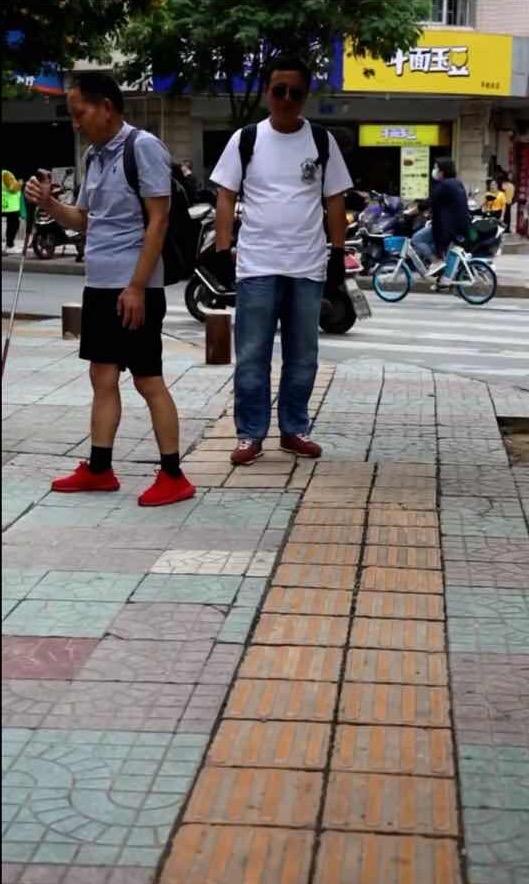自从视力下降后,周贵云就特别关注盲人出行的问题,“我还能看到物体的大致轮廓,像老马这样完全看不到的人更是寸步难行。”周贵云说。对盲人来说,盲道就是他们的第二双眼,但周贵云感到,如今盲道只能起到50%的作用。
