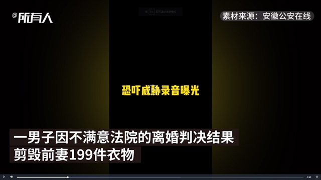 近日,安徽凤阳县板桥派出所接到陈女士报警,称家中199件衣物均被剪毁。经查,其前夫鲁某因不满法院离婚判决书,蓄意剪毁陈女士衣物。现鲁某已被警方逮捕。