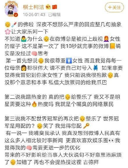 不知道为什么在微博总是被扣上歧视女性的帽子 这不是第一次了 我10秒就完事的微博确实是没经过思考。