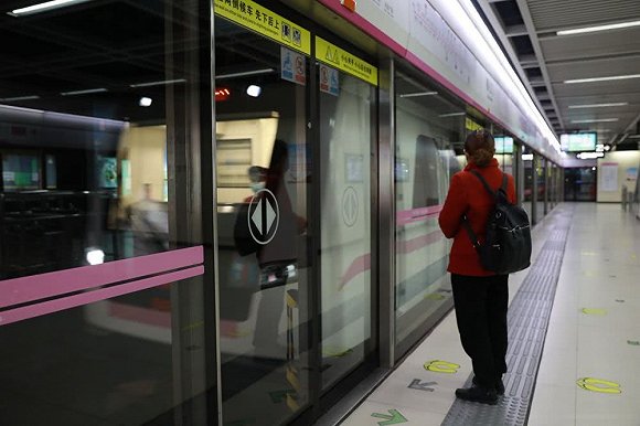 到站下车前主动扫描车厢码。张武军 摄根据防控工作的要求和部署,在恢复运营初期,轨道交通2、4、7号线按大小交路组织运营,小交路行车间隔约7.5分钟,大交路行车间隔约15分钟;轨道交通1、3、6号线按单一大交路组织运营,行车间隔约8分钟。开收班时段行车间隔会有所增大。3月28日,所有运营线路计划开行列车1545列次。