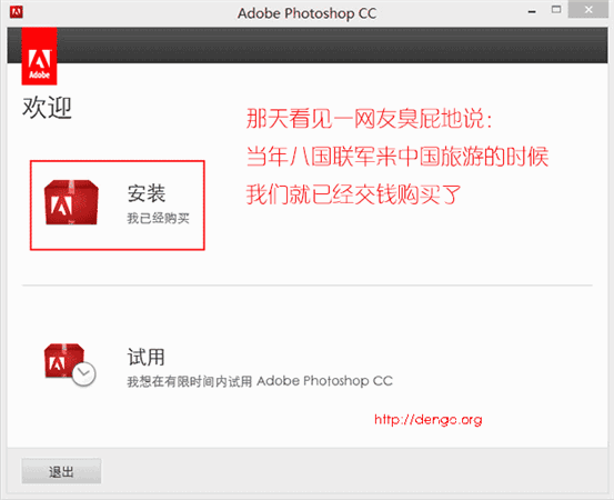 2.点击“安装”按钮(注意:不要点击“试用”按钮,否则安装的结果就不是完整版的)。
