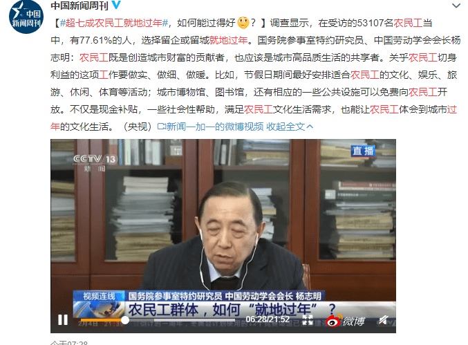 国务院参事室特约研究员、中国劳动学会会长杨志明:农民工既是创造城市财富的贡献者,也应该是城市高品质生活的共享者。关乎农民工切身利益的这项工作要做实、做细、做暖。比如,节假日期间最好安排适合农民工的文化、娱乐、旅游、休闲、体育等活动;城市博物馆、图书馆,还有相应的一些公共设施可以免费向农民工开放。不仅是现金补贴,一些社会性帮助,满足农民工文化生活需求,也能让农民工体会到城市过年的文化生活。
