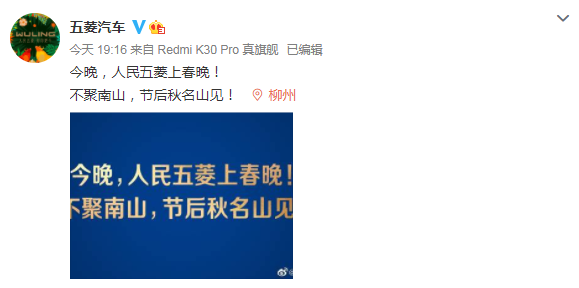 消息来源:@五菱汽车、@春晚