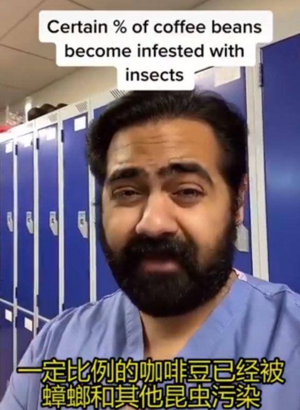 每日邮报报道,英国NHS的一名医生Karan Raj在社交媒体上称,咖啡粉的成分中通常含有一定比例的蟑螂和其他生物,他称这些蟑螂通常不能被完全处理掉,所以只能被烘烤,然后和咖啡豆一起被磨碎。不过这位医生也称,大多数食品权威机构允许食物中有一定比例的昆虫,而且“蛋白质含量很高”。“如果你对蟑螂过敏,最好远离咖啡”。这可能是咖啡爱好者最大的痛苦了。